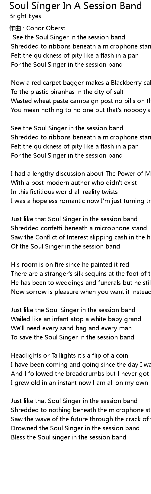 | 歌曲 | Soul Singer In A Session Band |