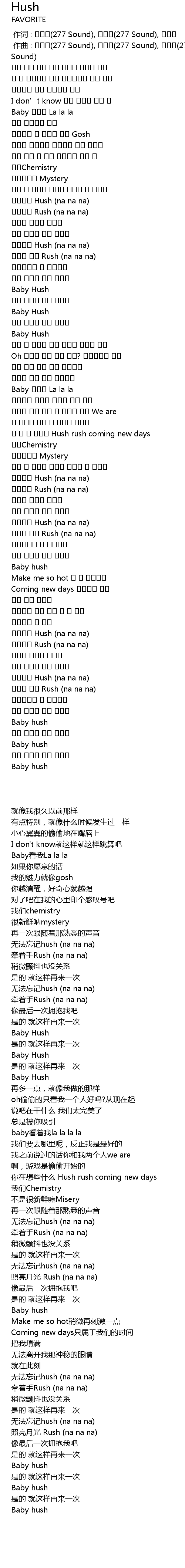 | [02:09.150] | 잊지못해 Hush (na na na) |