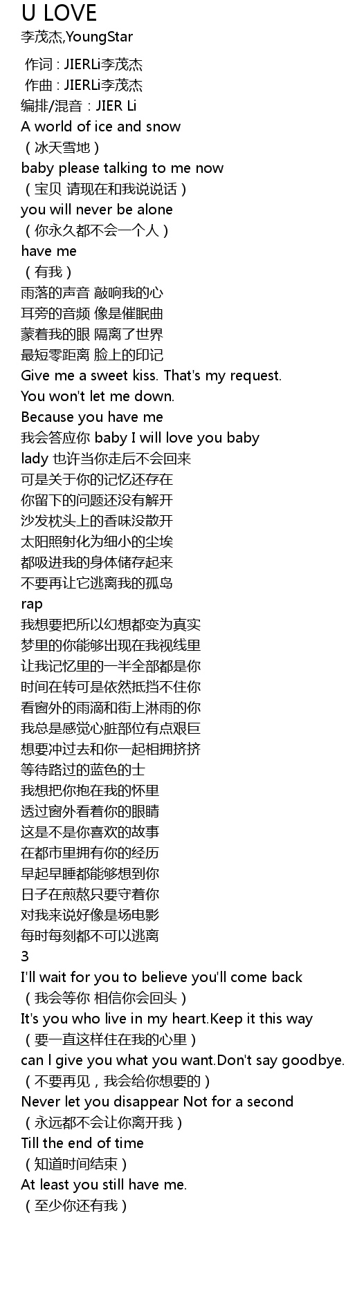 | [00:00.000] | 作词 : JIERLi李茂杰 |