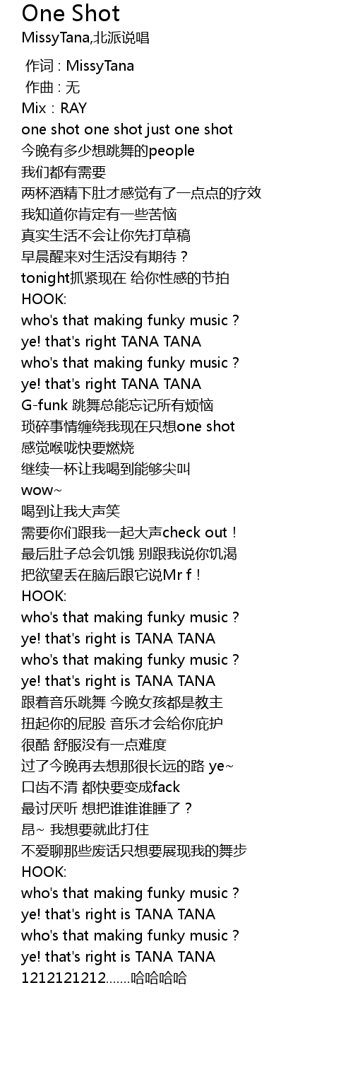 | [00:00.000] | zuo ci : MissyTana |