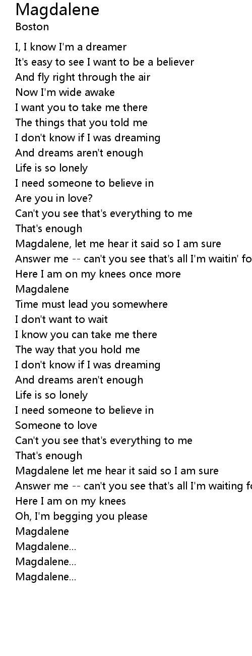 | Magdalene, let me hear it said so I am sure | |