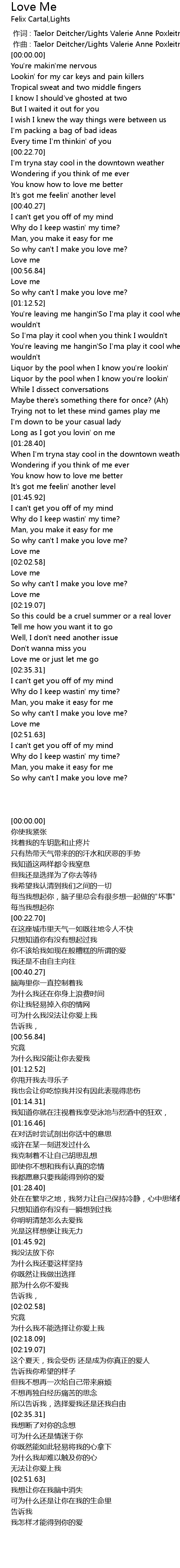 | [02:50.81] | Love me |