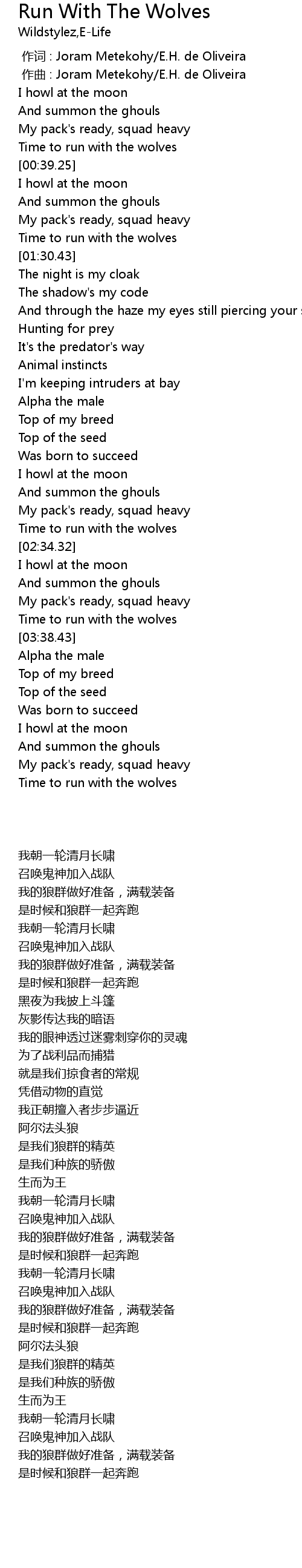 | [00:37.19] | Time to run with the wolves |