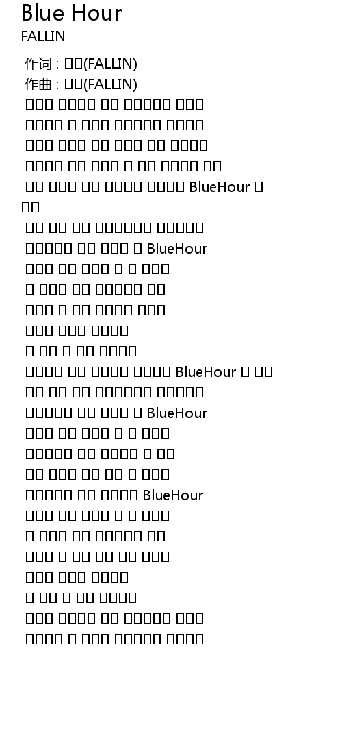 | [02:05.222] | 아름다울 기억 새벽녘을 이어주는 BlueHour 그 색에 |