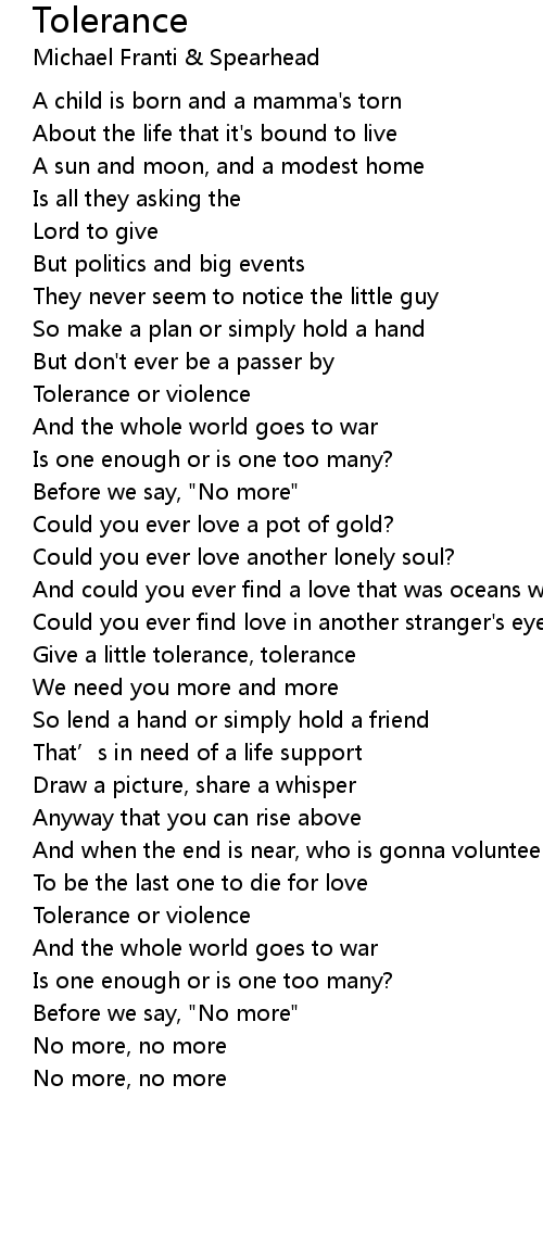 | Tolerance or violence | |