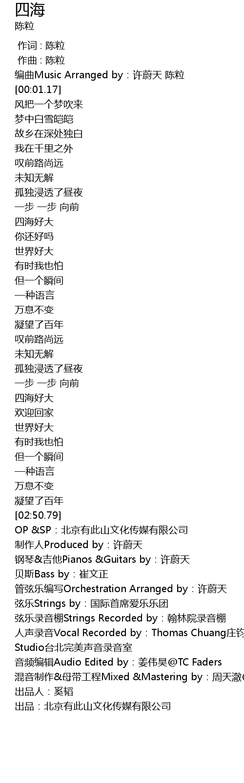 | [02:17.74] | 四海好大 |
