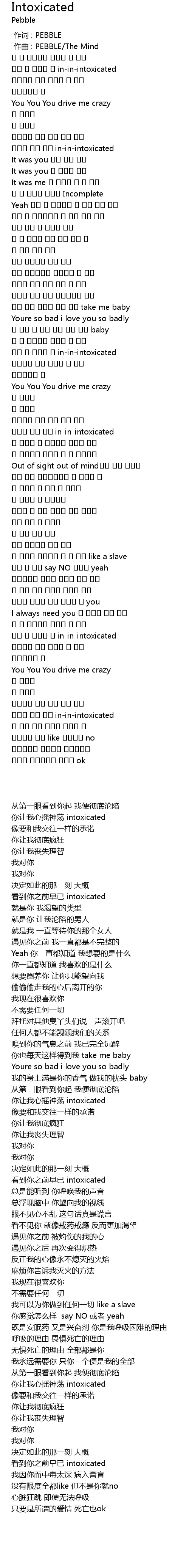 | 歌曲 | Intoxicated |