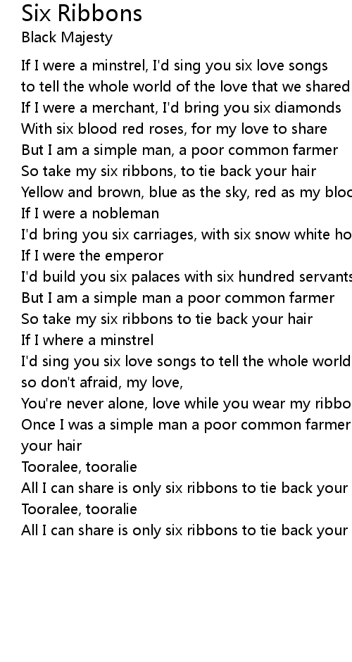 Once I was a simple man a poor common farmer I gave you six ribbons to tie back your hair |