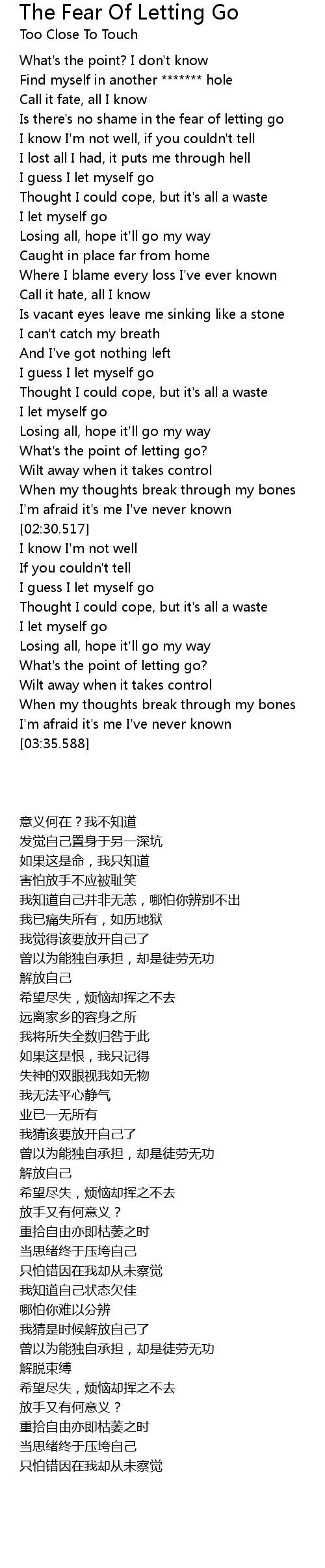 Is there's no shame in the fear of letting go |