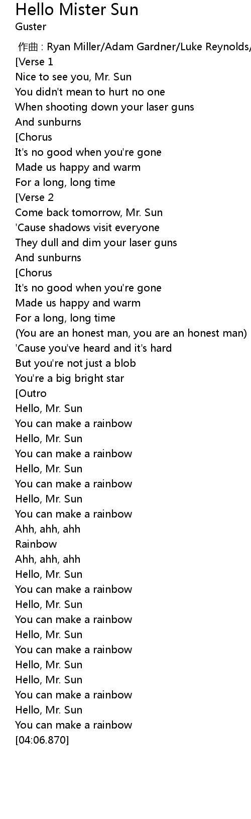 | [02:43.542] | Hello, Mr. Sun |