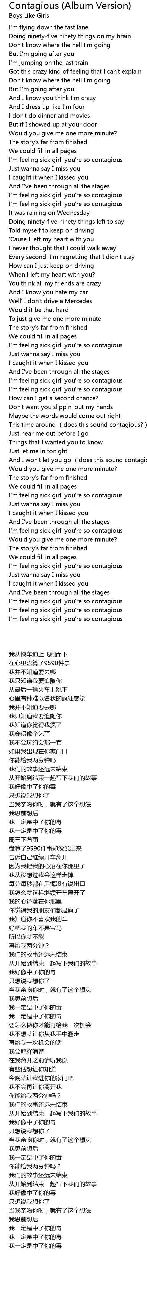 | [02:37.50] | I' m feeling sick girl' you' re so contagious |