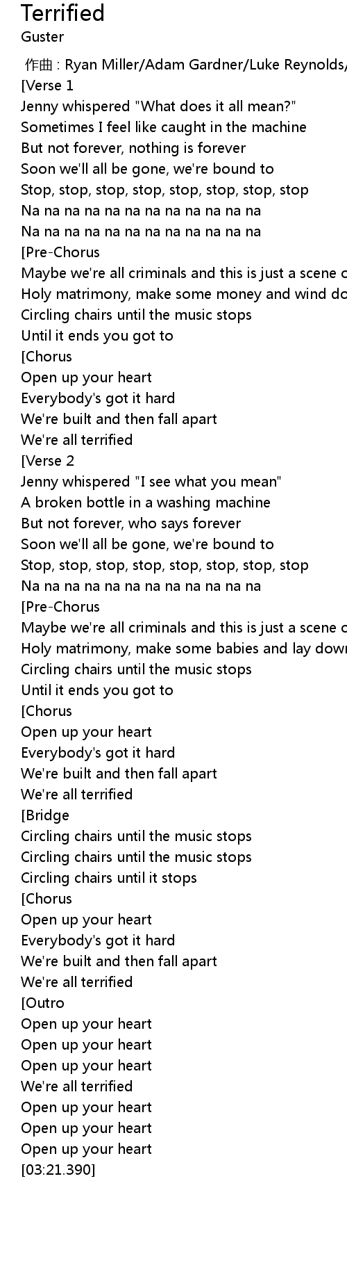 | [00:23.254] | Maybe we' re all criminals and this is just a scene of a crime |