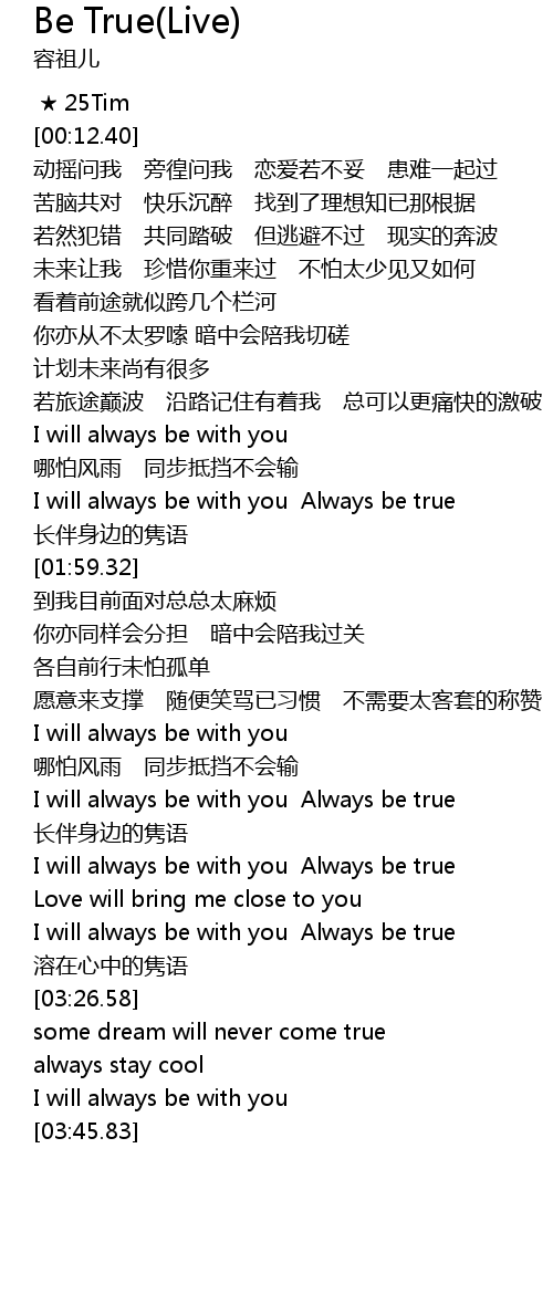 | [01:42.94] | I will always be with you Always be true |