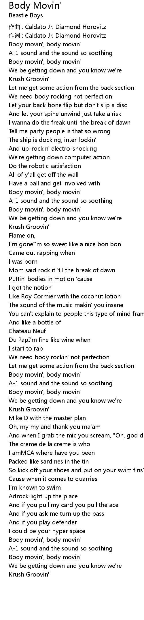 | Body movin', body movin' | |