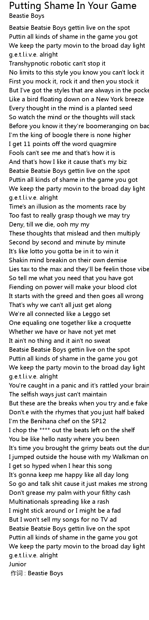 | [00:18] | Puttin all kinds of shame in the game you got |