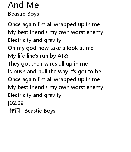 | [02:16][02:09][02:03][01:56] | Once again I' m all wrapped up in me |