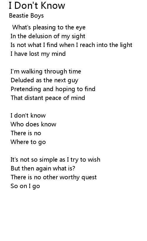 | 歌曲 | I Don't Know |