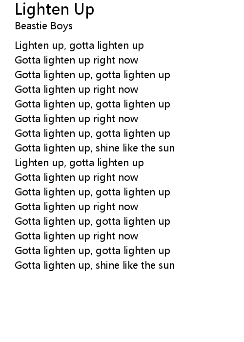 Gotta lighten up right now |