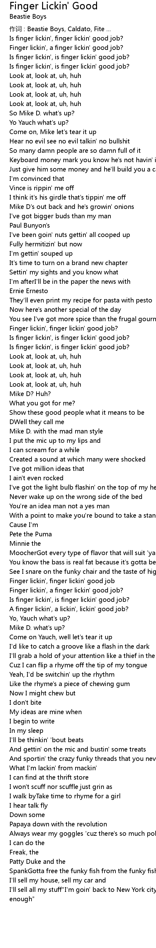 | 歌曲 | Finger Lickin' Good |