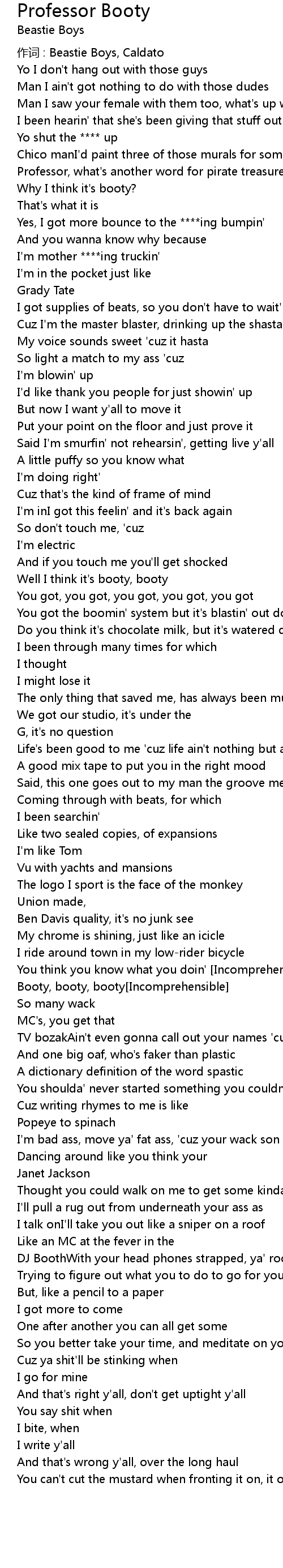 | 歌曲 | Professor Booty |