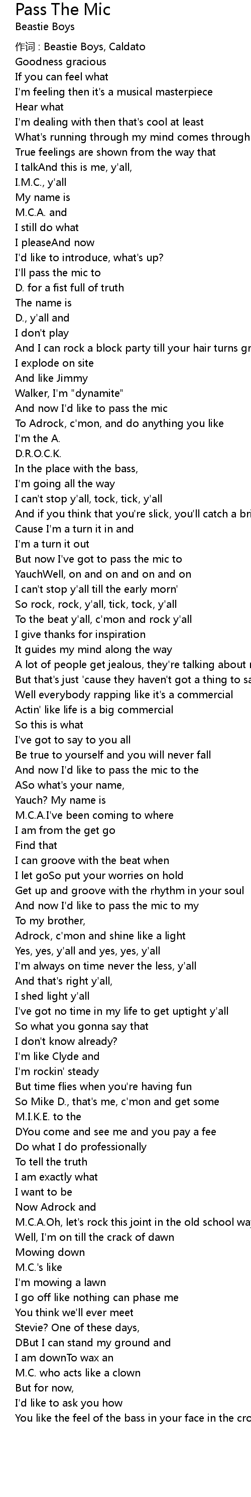 | 作词 : Beastie Boys, Caldato | |