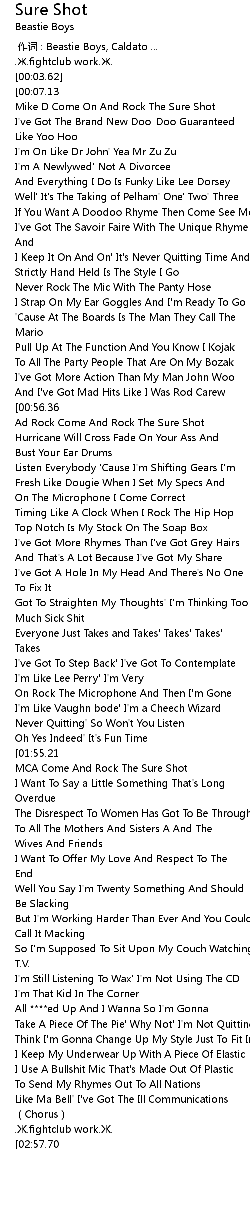 | [00:12.82] | Mike D Come On And Rock The Sure Shot |