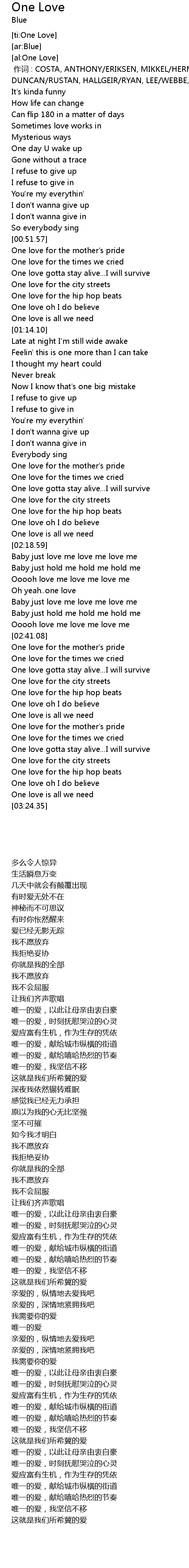 | [02:16.41] | One love is all we need |