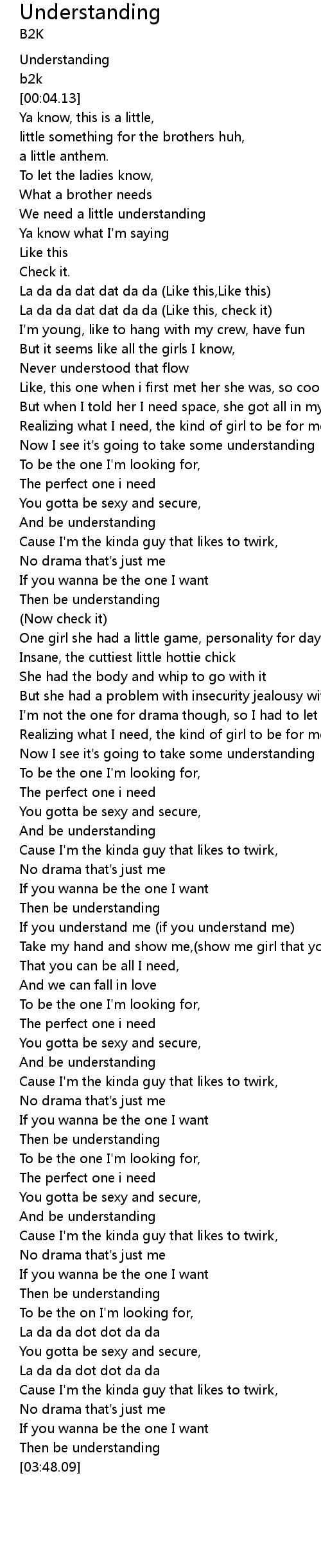 | [01:44.58] | I'm not the one for drama though, so I had to let her go |