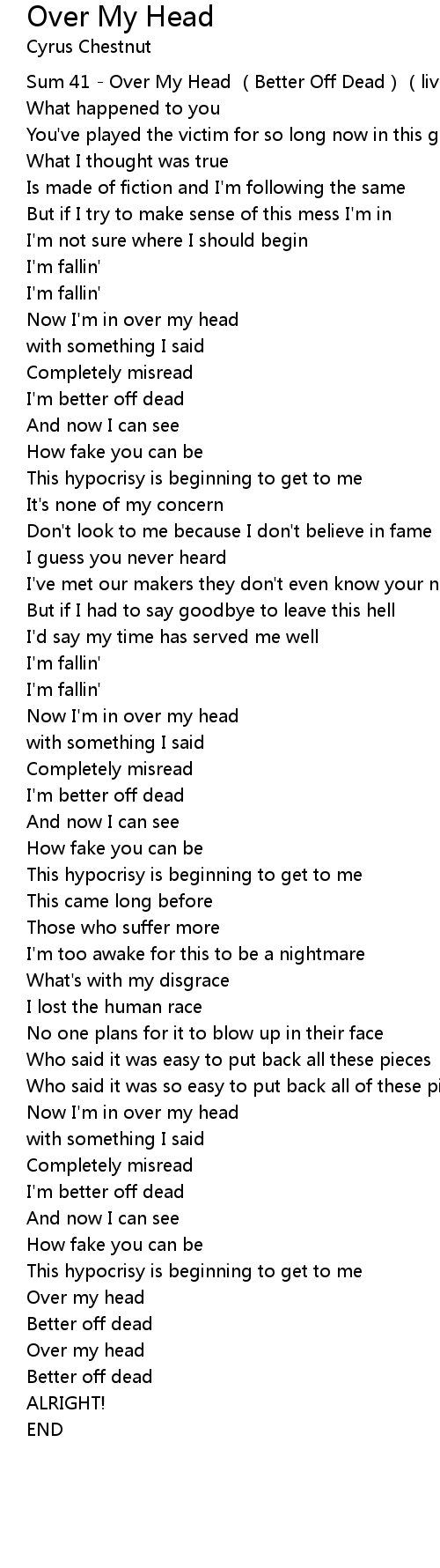 | [00:00.00] | Sum 41 - Over My Head (Better Off Dead)(live) |