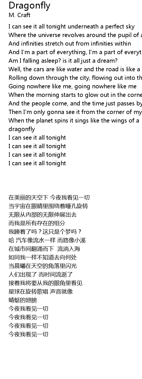 | [00:13.14] | 在美丽的天空下 今夜我看见一切 |