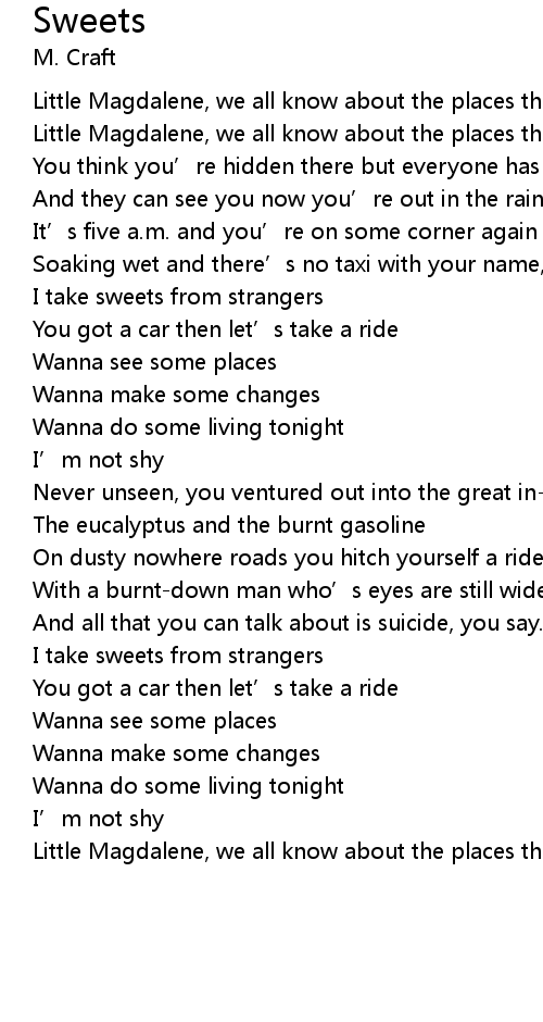 | [00:25.24] | Little Magdalene, we all know about the places that you’ve been |