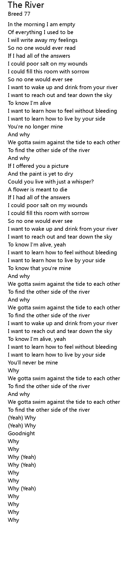 | I want to wake up and drink from your river | |