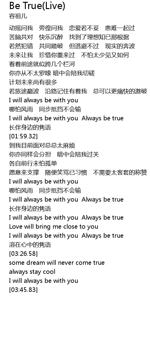 | [01:42.94] | I will always be with you Always be true |