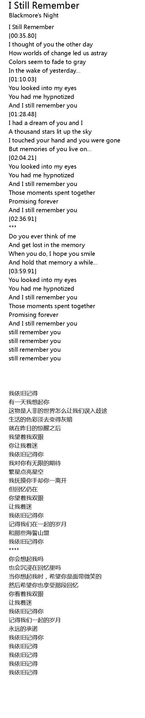 | [04:33.46] | still remember you |