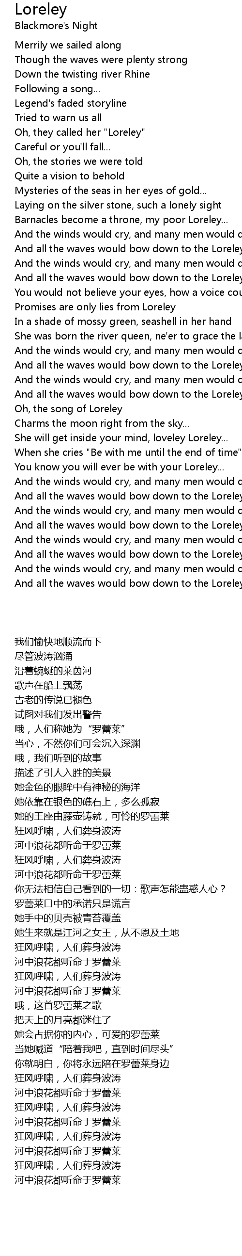 Oh, the song of Loreley |
