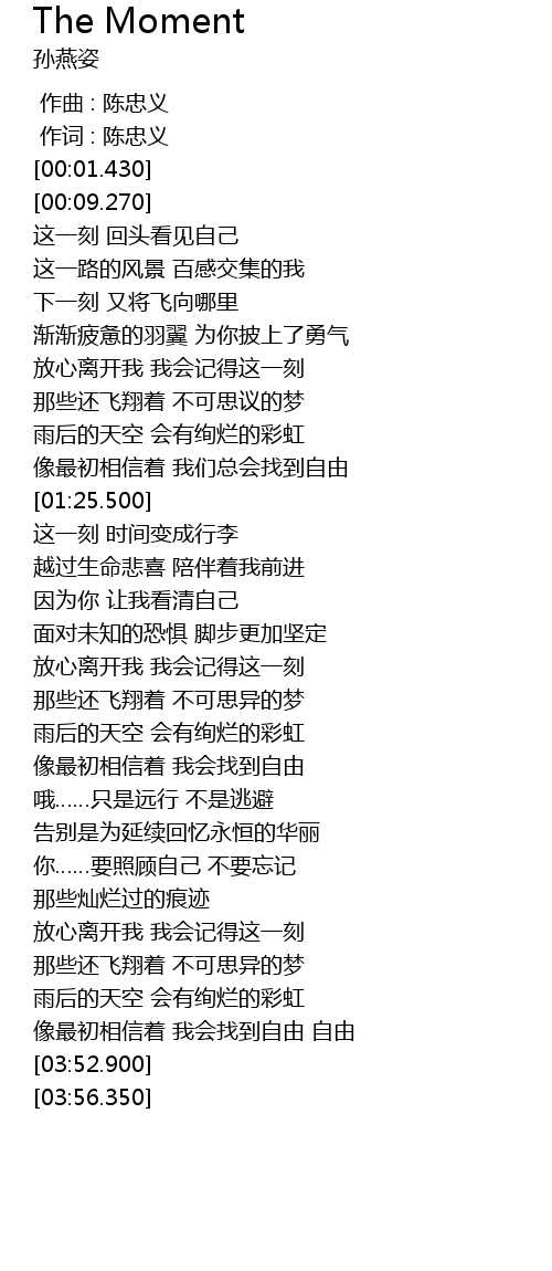 | [03:38.300] | 像最初相信着 我会找到自由 自由 |