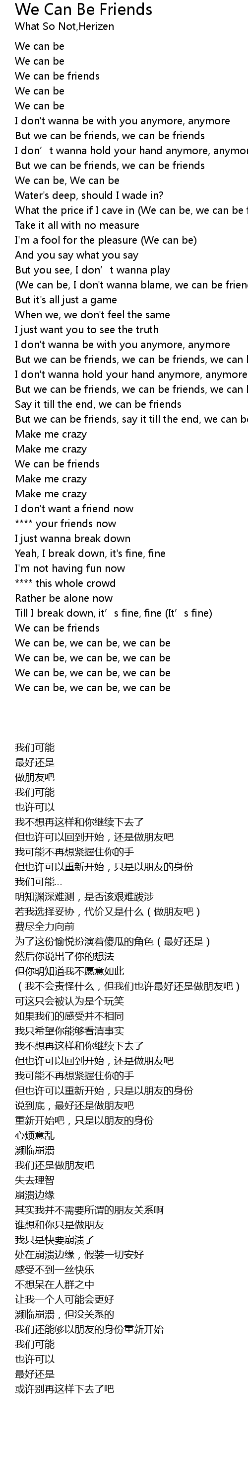 | 歌曲 | We Can Be Friends |