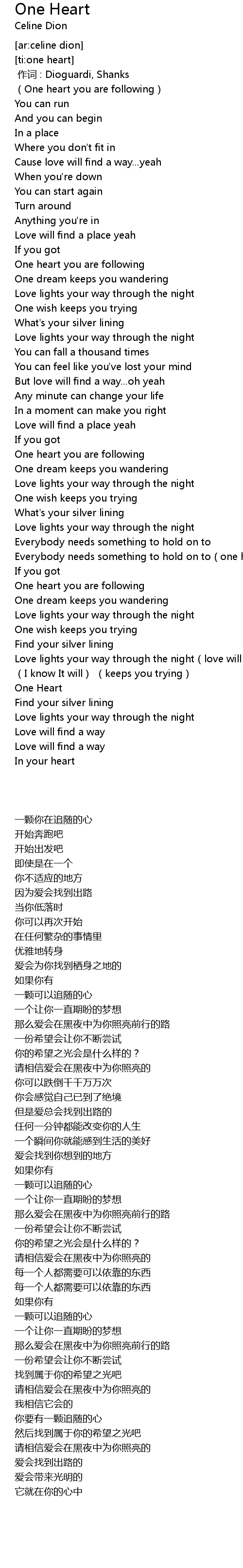 | [00:46.18] | One heart you are following |