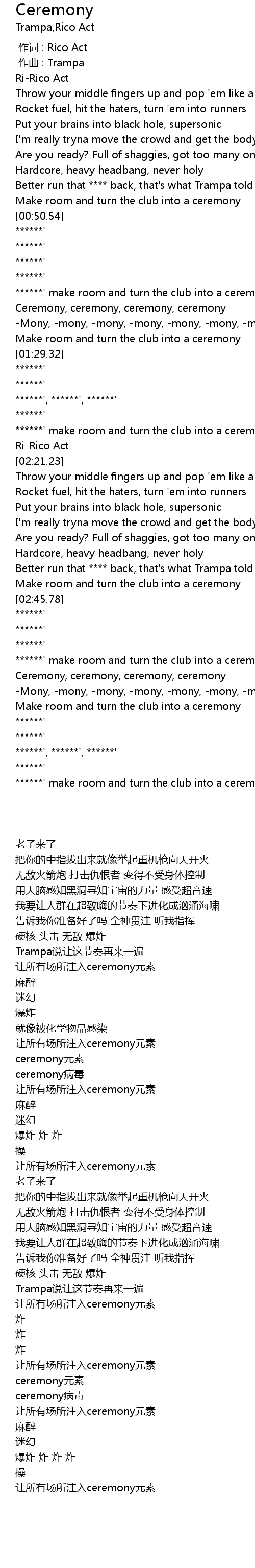 | [03:14.88] | Ceremony, ceremony, ceremony, ceremony |