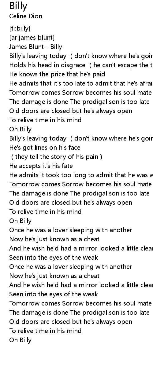 | [01:14.940] | Billy's leaving today (don't know where he's going) |