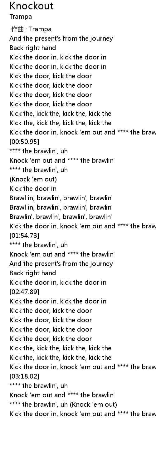 | [03:48.84] | **** the brawlin', uh (Knock 'em out) |