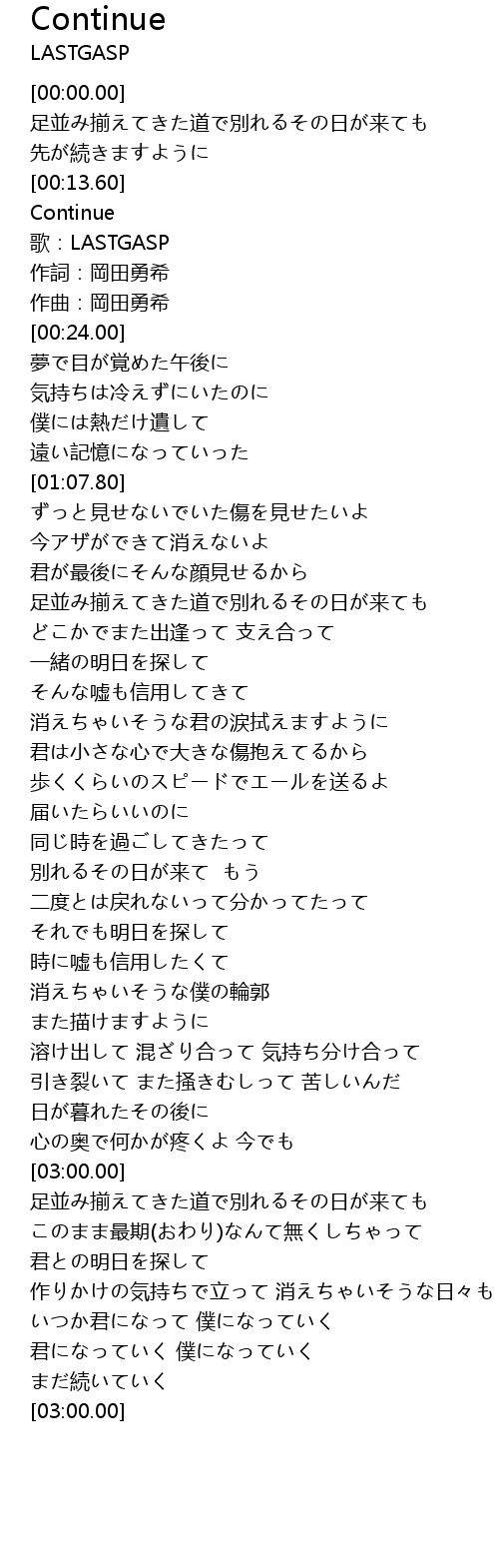| [03:00.00] | まだ続いていく |