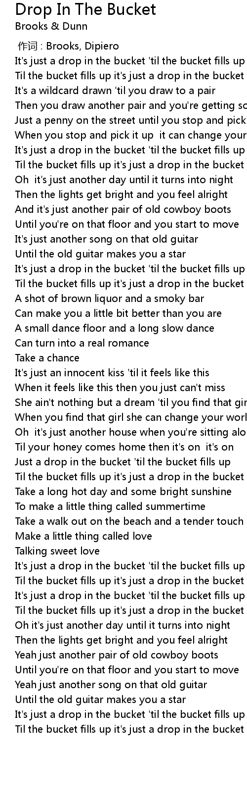 | [00:37.26] | Til the bucket fills up it's just a drop in the bucket |