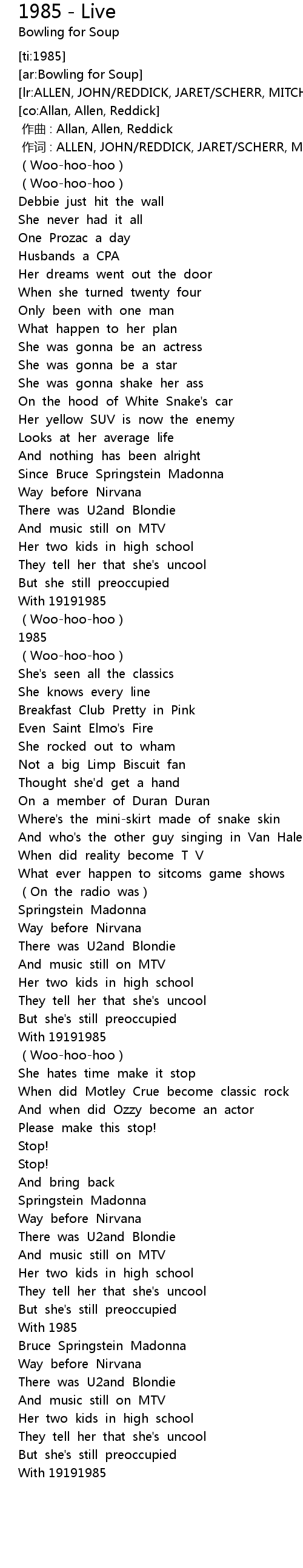 | [00:52.28] | Since Bruce Springstein Madonna |