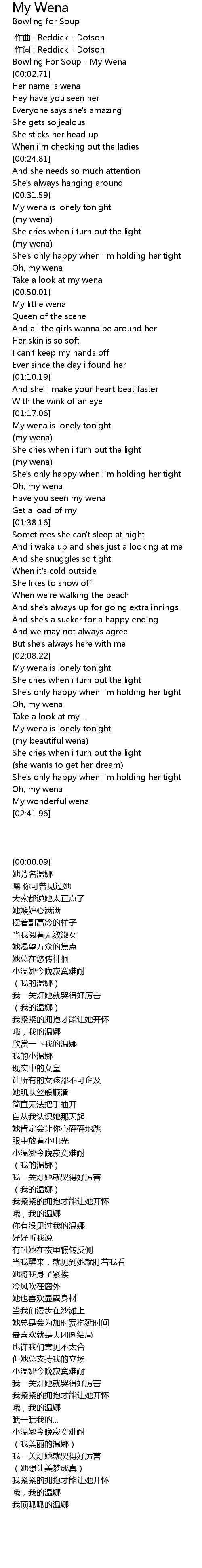 | [00:00.09] | Bowling For Soup My Wena |
