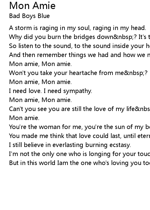 Mon amie, Mon amie. |