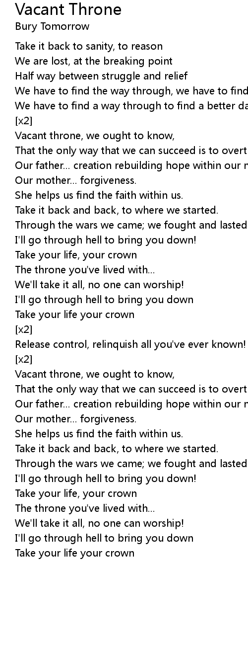 Vacant throne, we ought to know, |