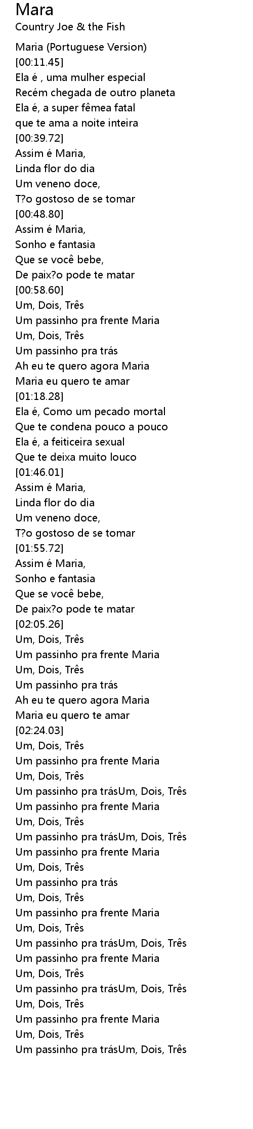 | [02:16.23] | Ah eu te quero agora Maria |
