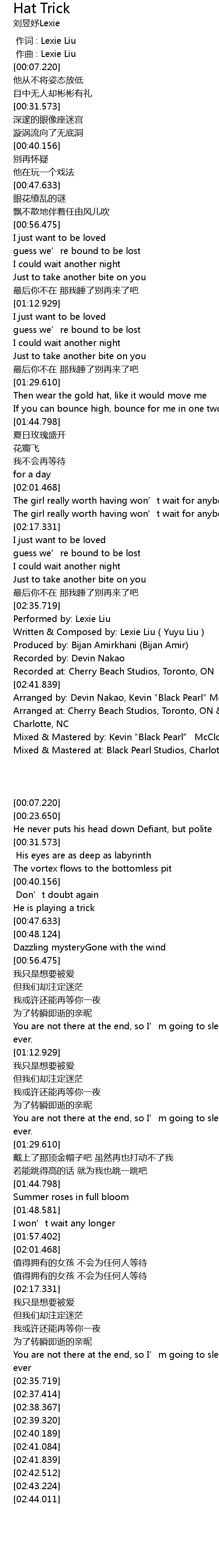 | [02:38.367] | Written Composed by: Lexie Liu Yuyu Liu |