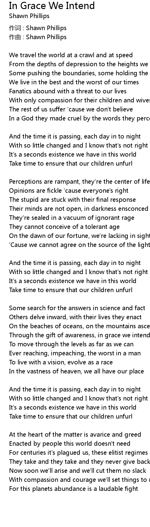 | 歌曲 | In Grace We Intend |